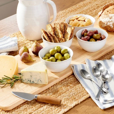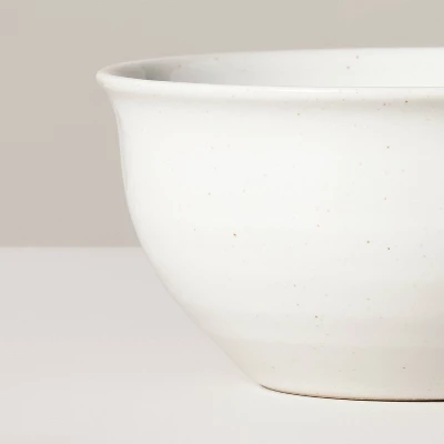 Set a stylish table for entertaining with the 10-Ounce Flared Brim Stoneware Mini Bowl from Hearth & Hand™ with Magnolia. This mini stoneware bowl comes in a cream color with a beautiful reactive glaze finish, showing off a flared brim and slight speckling. Great in a group, this 10-ounce mini bowl is perfect for serving small snacks or holding items like olives, crackers or nuts on a cheese board at your next gathering.