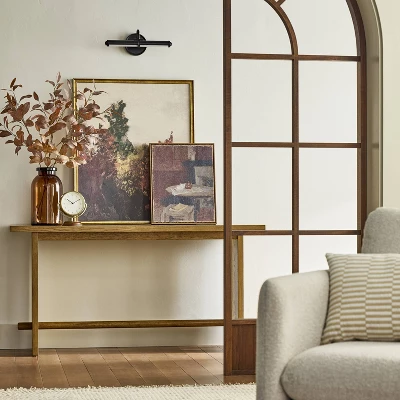 Add an elegant touch to your living space with this Vertical Dining Still Life Framed Burlap Wall Art from Hearth & Hand™ with Magnolia. Encased in a stylish brown polystyrene frame, this burlap wall art showcases a coffee table and chair with books to give your wall a little personality without overwhelming the decor in the room. Equipped with a sawtooth back, it’s easy to hang on any wall.