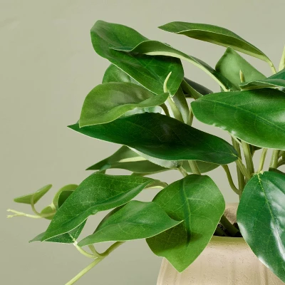 Bring a touch of nature to your indoor space with this Faux Mini Trailing Hoya Plant from Hearth & Hand™ with Magnolia. This stunning faux potted plant features a beautifully trailing hoya plant in lush green that adds a vibrant and natural look to any space without the need for maintenance. Just place it on the mantel, console or sideboard along with other decor for a fresh, welcoming look.