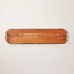 32″ Wooden Decorative Tray With Metal Trim Brown/Brass – Hearth & Handâ„¢ With Magnolia