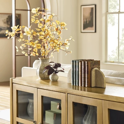 Make your bookshelf look extra appealing with this 2-Piece Marble Bookends Set from Hearth & Hand™ with Magnolia. This set includes two bookends in a brown hue, crafted from marble for use season after season. Designed in an arched shape, these marble bookends enhance the visual interest of your reading nook.