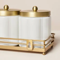 Milk Glass Bath Canister Set White/Brass With Wall-Mounting Kit – Hearth & Hand™ With Magnolia