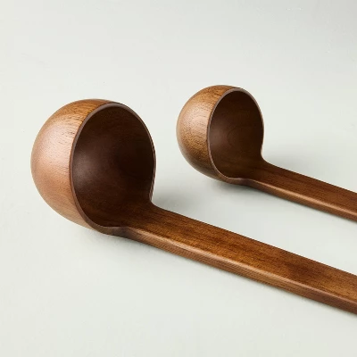 Enhance your kitchen experience with these Soup Ladles from Hearth & Hand™ with Magnolia. This set includes two soup ladles with varying handle lengths for versatile use. Made of wood, these 150-millimeter soup ladles are ideal for serving adequate portions of soup at family gatherings and other special occasions.